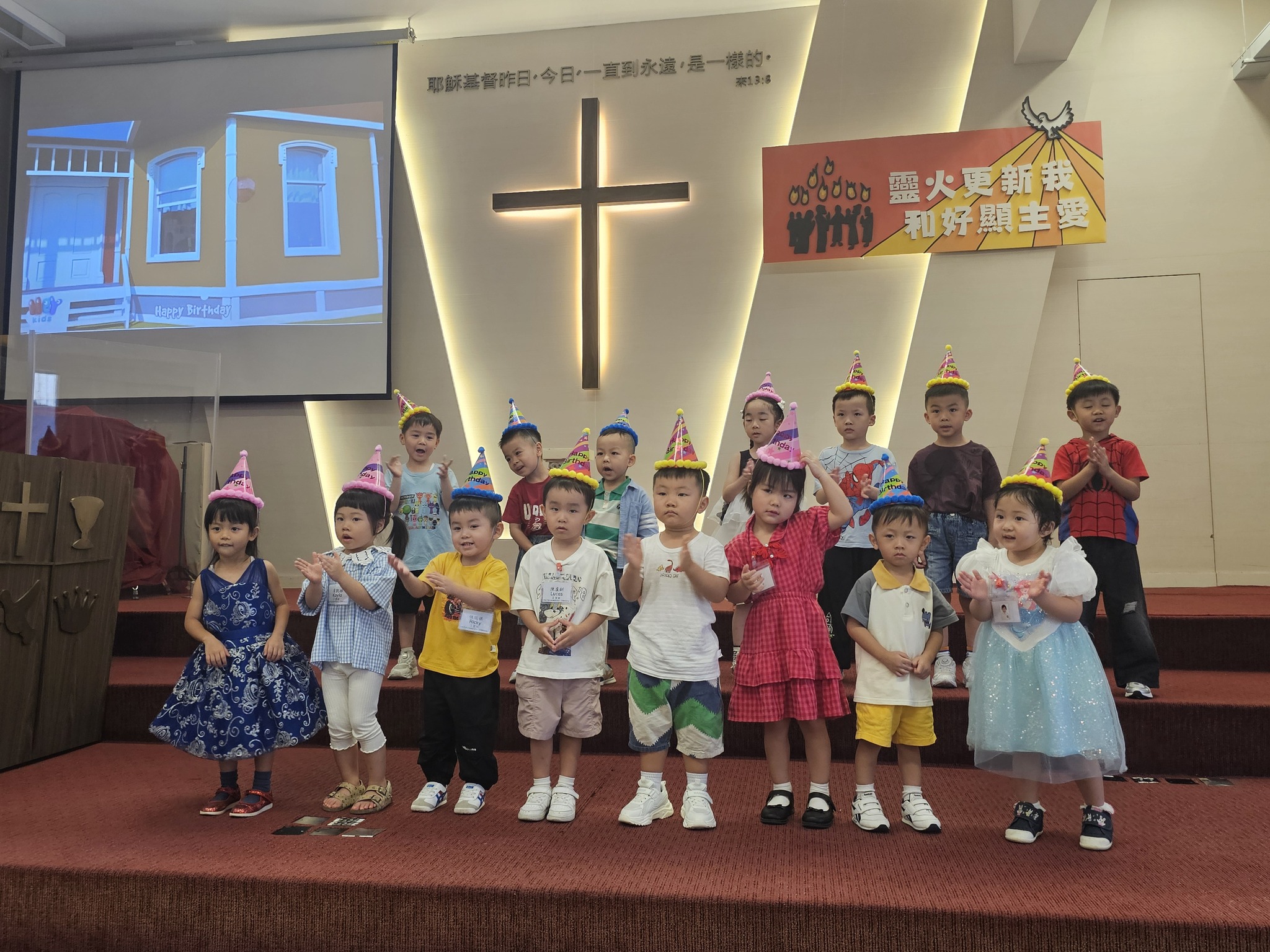 9月29日是本學年第一個生日會,校長和老師同心預備,為8-9月生日的小朋友送上祝福,一同感謝天父的看顧。