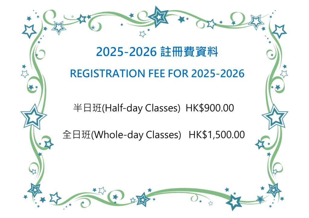 • After admission, parents are requested to bring their “Registration Certificate or Admission Pass” and the registration fee ($900 for half-day classes/$1500 for full-day classes) to the school to complete the registration procedures. If the registration procedure is not completed before the expiry date, the place will be deemed to have been abandoned automatically, and the abandoned place will be replaced by the next person.