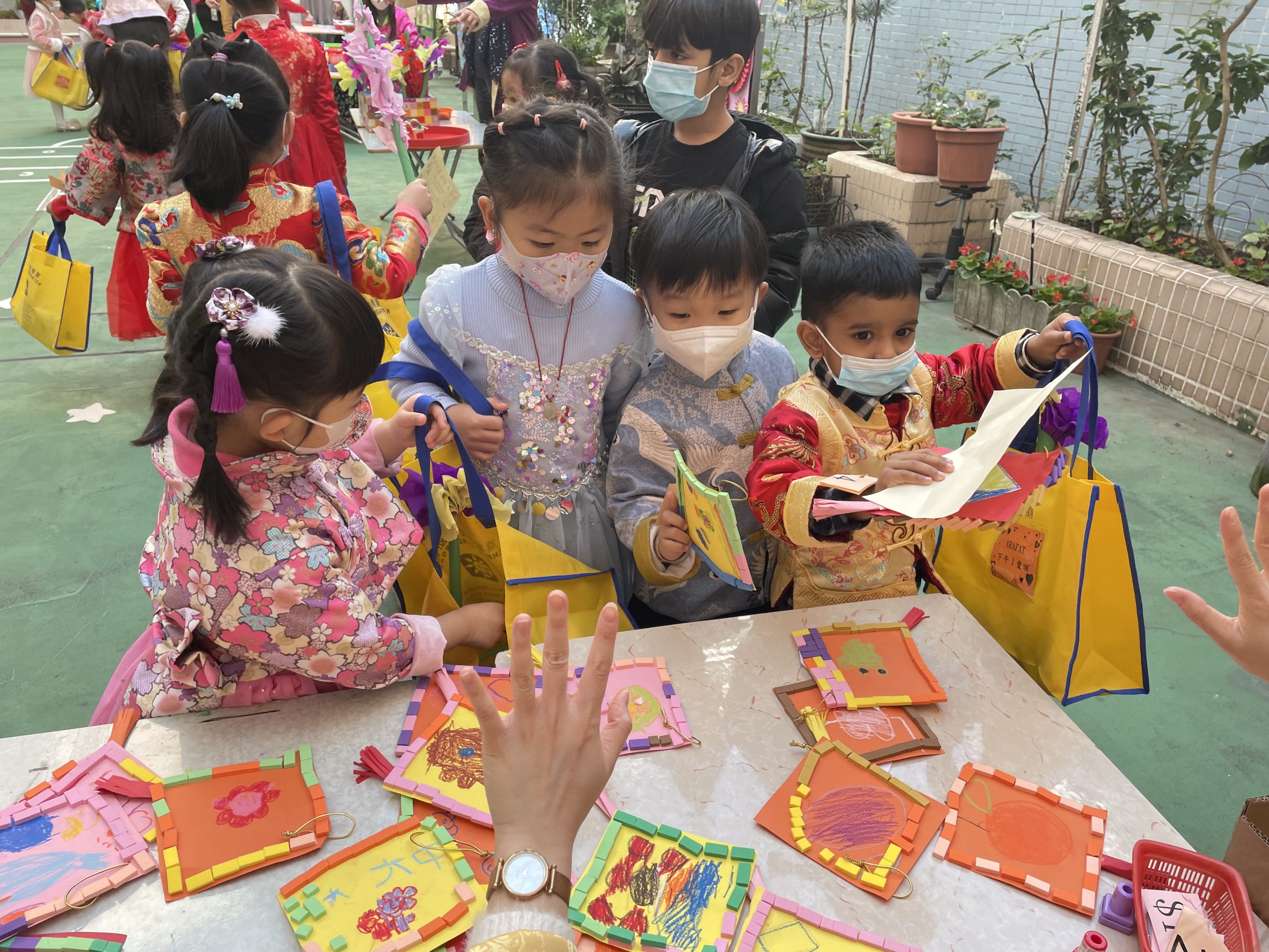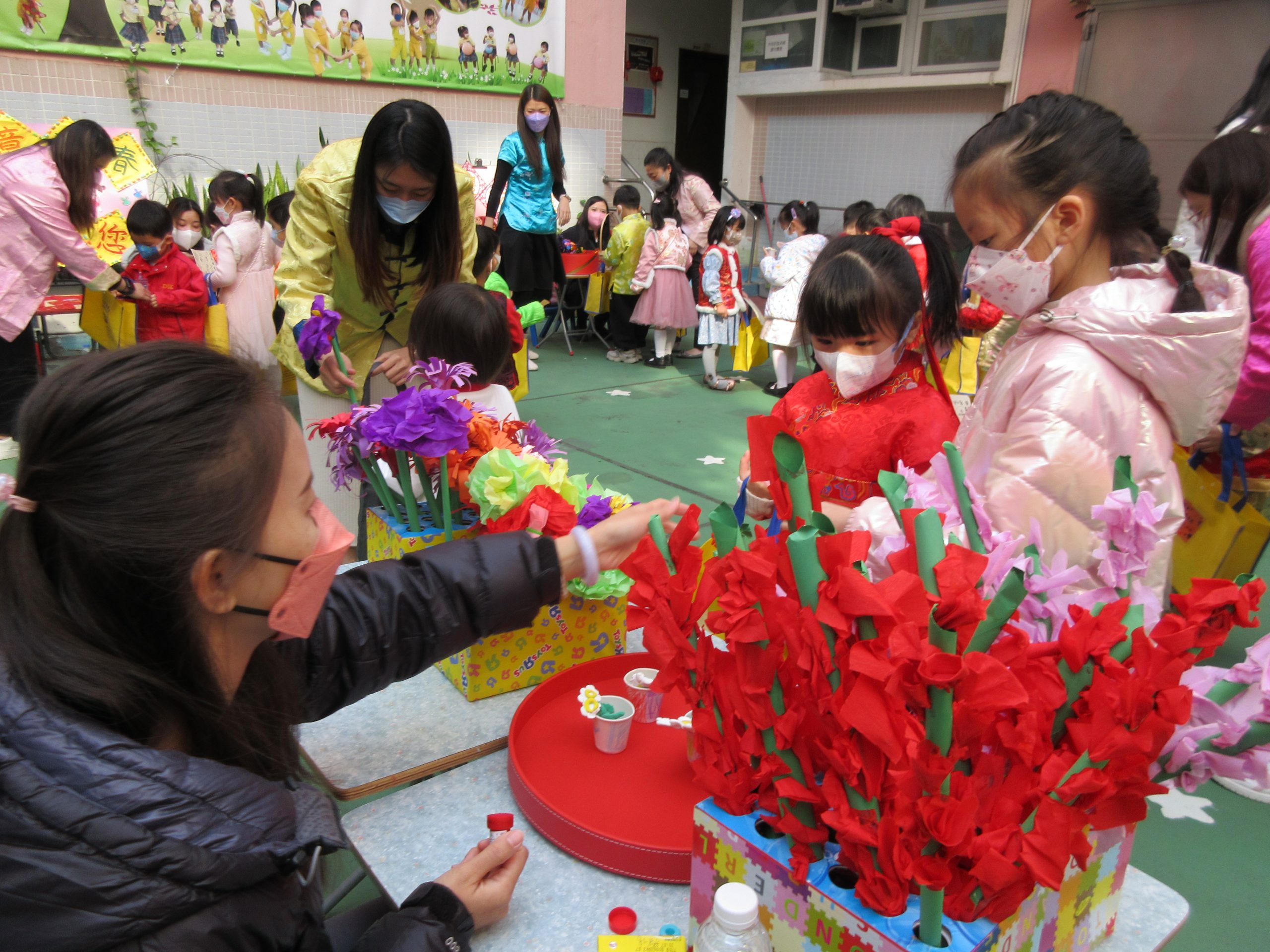 透過進行升旗禮、穿華服,品嚐中國點心,並親手製作中國傳統的湯圓、花燈、揮春、剪紙和水墨畫等,設計多元化的素材和學習活動,讓幼兒享受其中的學習樂趣。